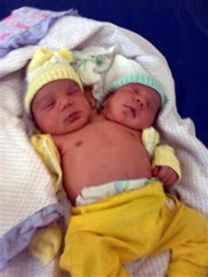 No dia em que deu entrada no hospital, a equipa médica identificou por meio de ultra-som que se tratava de dois bebés com um só corpo. Imediatamente accionaram as condições para uma cesariana, que durou cerca de uma hora (um pouco mais do que o habitual) porque o corpo dos meninos estava sentado.