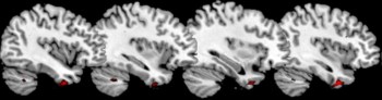A vermelho são as áreas dos pólos temporais com menos massa cinzenta nos psicopatas