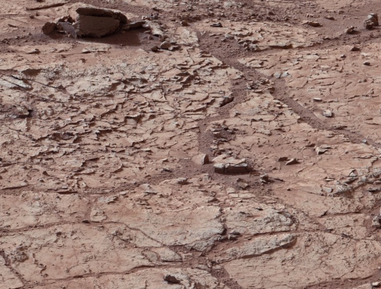 É fácil imaginar que ali correu um rio e agora aquele é o leito seco. O chão é plano, tem rochas com fracturas e veios e os intervalos estão preenchidos com solo mais fininho. É nesta paisagem marciana que facilmente desperta sensações de solidão que o robôCuriosity se prepara para a sua primeira perfuração de rochas. Provavelmente, diz a NASA, dentro de duas semanas.
