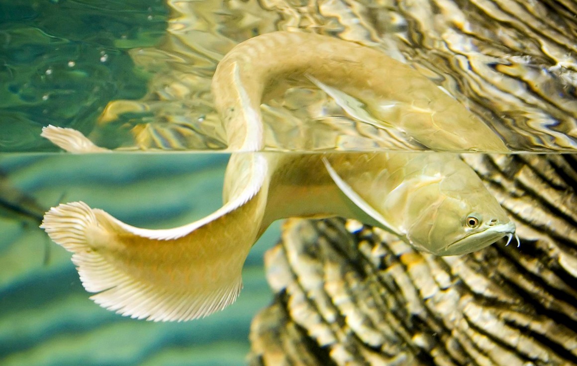 Mais conhecido no Brasil como pirarucu ou pirosca, o Arapaima gigas é um dos maiores peixes de água doce conhecidos: já se pescaram exemplares de 200 quilos e três a quatro metros de comprimento. Mas se as escamas o protegem das piranhas e de outros predadores naturais, elas são de pouca utilidade contra o mais ameaçador de todos os predadores – o homem, grande apreciador da sua carne.