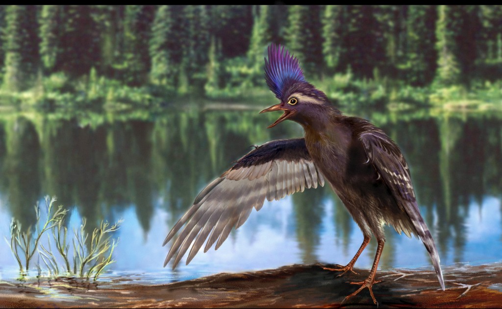 Ilustração científica da nova ave do Cretácico, que terá vivido num ambiente lacustre ZONGDA ZHANG