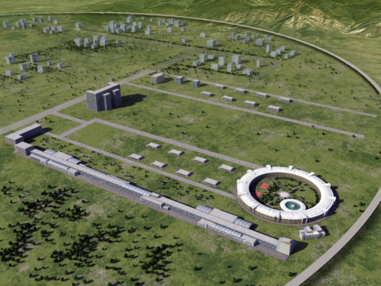 Representação artística do futuro acelerador de partículas chinês INSTITUTO DE FÍSICA DE ALTAS ENERGIAS DA CHINA