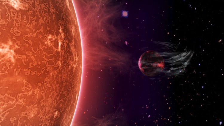 Representação artística de uma super-Terra e da destruição da sua atmosfera pela radiação da estrela PETER DEVINE
