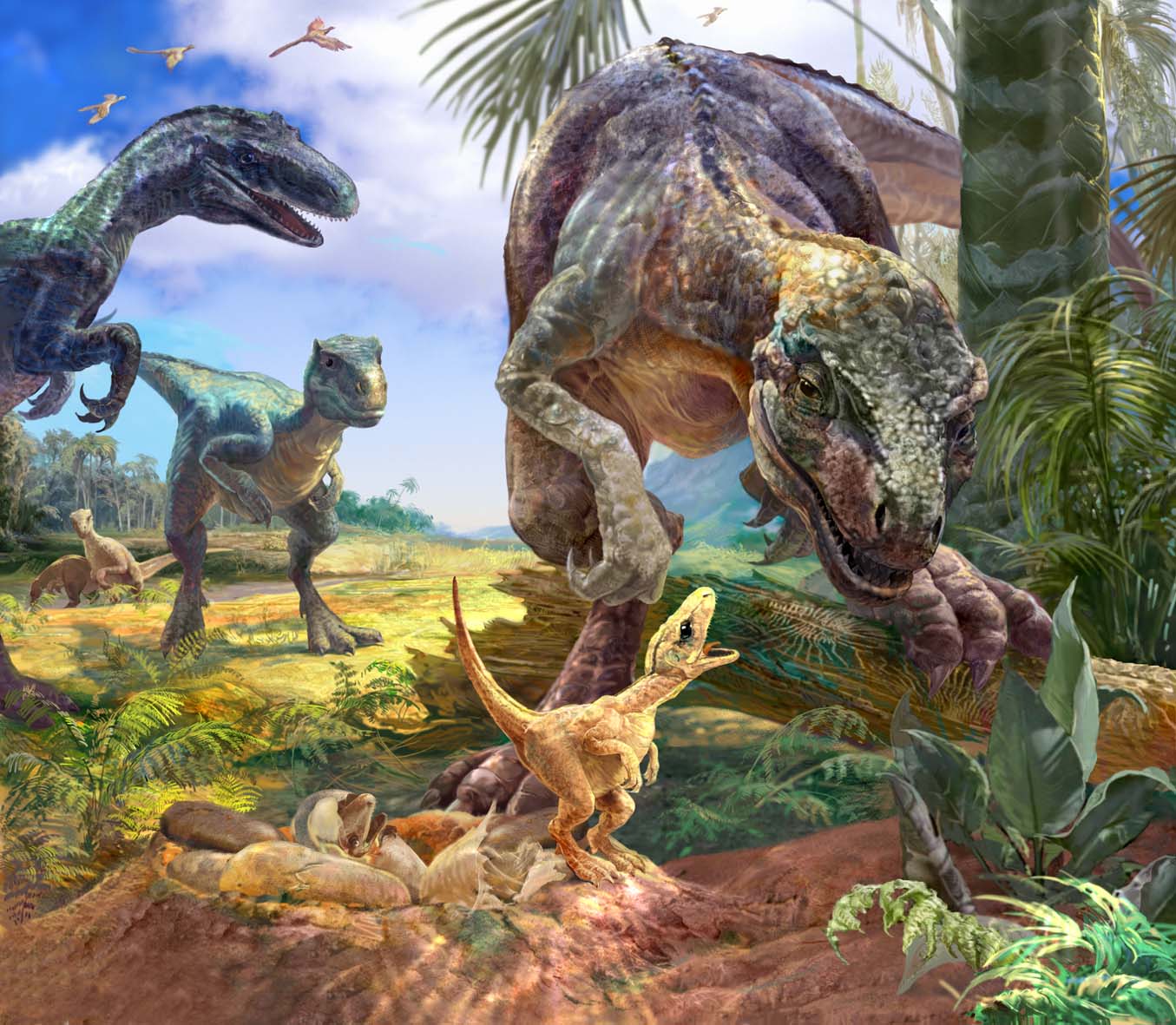 Um megalossaurídeo, como o que pôs ovos na Lourinhã, junto ao seu ninho