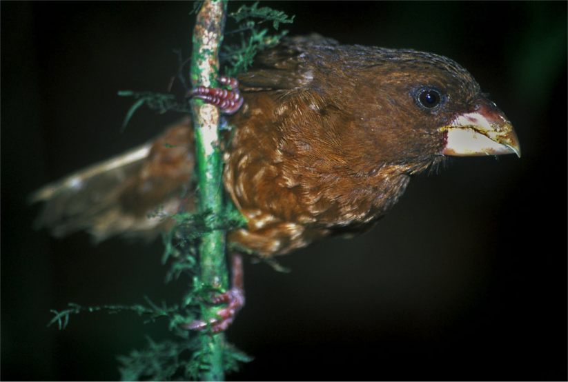 E como é que o bico-grossudo se tornou gigante? Por enquanto há só hipóteses. “Muitas vezes nas ilhas, as espécies aumentam de tamanho”, explica Martim Melo. Isto porque em geral há pouca competição entre espécies e a espécie que chegou primeiro, neste caso o bico-grossudo-de-são-tomé, vai crescer mais. E quando chegaram à ilha outros indivíduos da mesma espécie, a competição aumentou (como aconteceu com a chegada do canário-de-são-tomé-e-príncipe), nomeadamente por recursos alimentares. No final, os indivíduos que divergiram mais foram favorecidos. O antepassado do bico-grossudo terá sido assim o que cresceu mais, tornando-se um canário gigante. Além disso, o seu bico de dois centímetros conseguia sementes que o canário-de-são-tomé-e-príncipe não conseguia.