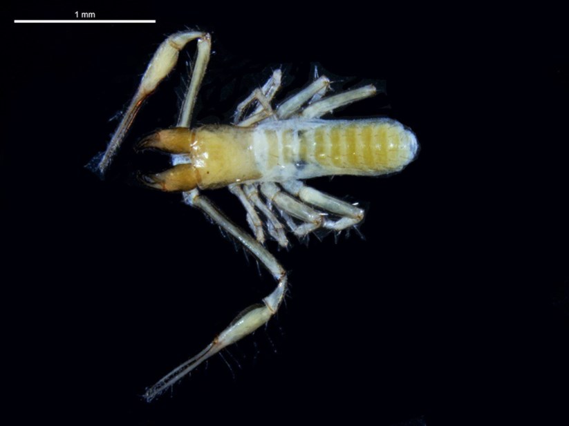 “Esta nova espécie, que tem cerca de dois milímetros de comprimento, é um organismo troglóbio, que significa que está adaptado à vida nas grutas, é despigmentado e carece de estruturas oculares, uma vez que vive num ambiente onde a obscuridade é total”, descreve a bióloga, adiantando que se trata de um animal que só vive em grutas do maciço calcário do Algarve.